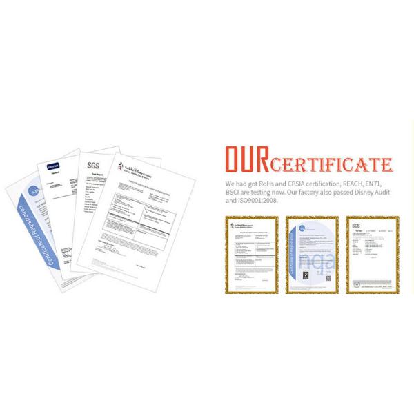 | Quality: | 1st quality and good workmanship, normally the materials are AZO free and low cadmium. Alternative, we can use material as per special requirements, ie. REACH, SHVC, EN71, CPSIA and so on. |